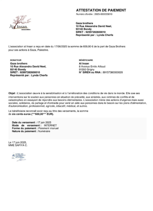 We have chosen to donate your donations to the @humanappealfrance association.